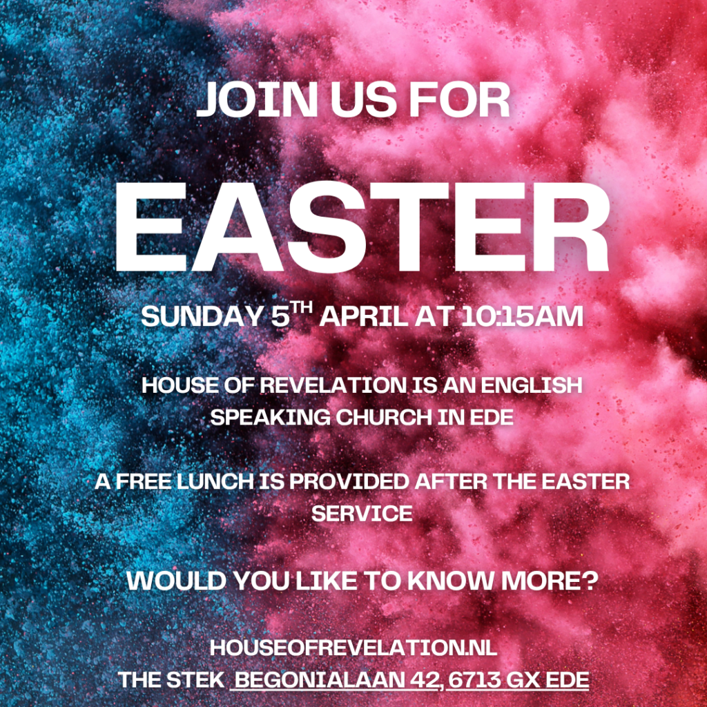 House of Revelation is an international church in Ede. Our services are held in English. You are very welcome to join from 10:15am at “De Stek” each Sunday. We begin with tea and coffee followed by our Sunday service. We provide light refreshments after the service for a time of fellowship.